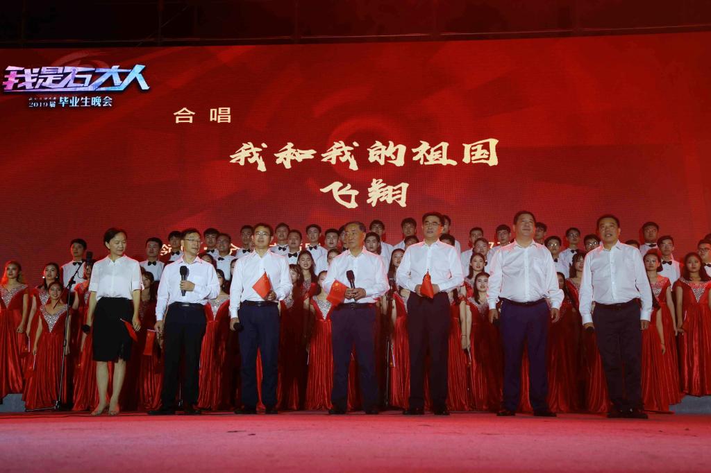 “我是石大人,我們都是追夢人”,6月15日晚,學校隆重舉行“我是石大人”2019屆畢業生晚會,部分校領導及數萬名師生到場參加。時值新中國成立七十周年,畢業生晚會以弘揚愛國主義為旋律,傳遞青春正能量為線索,為全校師生帶來一個溫情又難忘的夜晚。