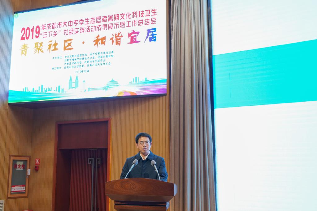 校黨委副書記趙正文,中共成都市委宣傳部副巡視員梁紅,共青團(tuán)成都市委副書記謝灃,中共成都市委城鄉(xiāng)社區(qū)發(fā)展治理委員會(huì)社區(qū)治理處副處長邱繼蘭,成都市教育局宣教處副處長吳榮東,共青團(tuán)成都市委學(xué)校部副部長謝松,西南石油大學(xué)黨委常委、宣傳部部長易聯(lián)樹,校團(tuán)委書記夏艷,馬克思主義學(xué)院院長張小飛,教務(wù)處副處長周東華出席活動(dòng)。
