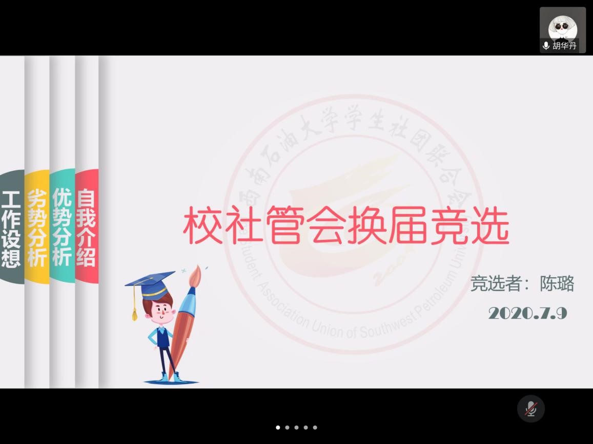 7月9日上午,我校團(tuán)委直屬學(xué)生組織、校學(xué)生會(huì)、校學(xué)生社團(tuán)民主管理委員會(huì)進(jìn)行了校團(tuán)委副書(shū)記(學(xué)生)和新一屆主席團(tuán)面試。本次面試因受疫情影響采用騰訊會(huì)議平臺(tái)進(jìn)行。校團(tuán)委書(shū)記夏艷,副書(shū)記張維,校團(tuán)委全體老師,第六十二屆學(xué)生會(huì)、第十七屆社團(tuán)聯(lián)合會(huì)主席團(tuán)成員參加。