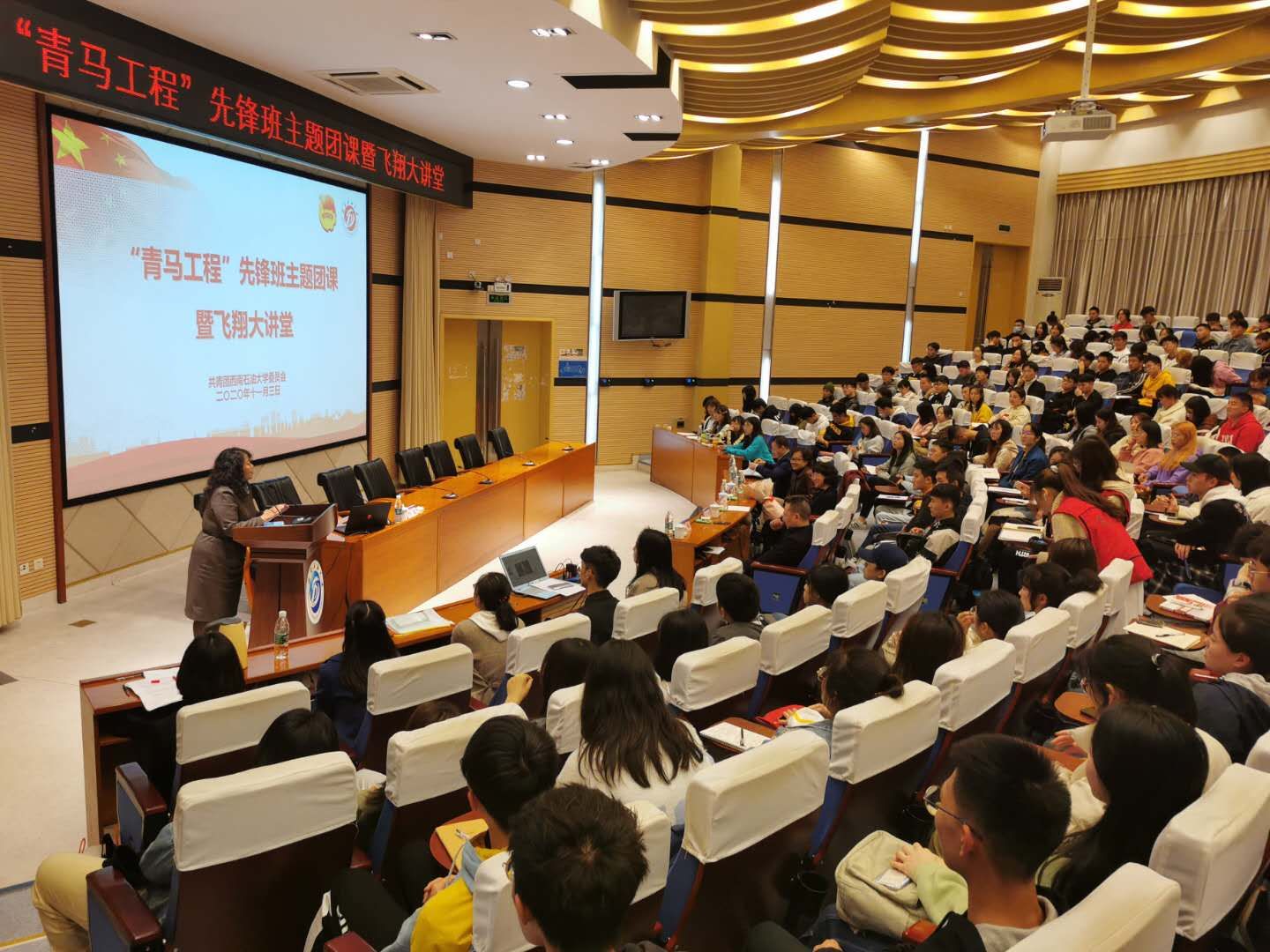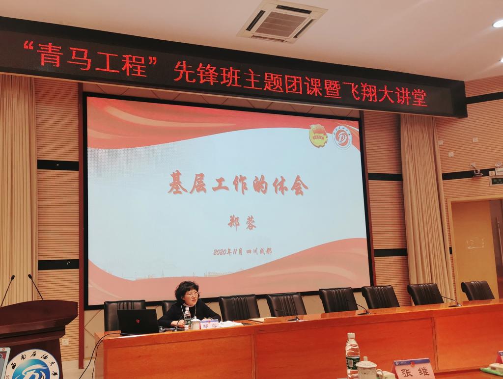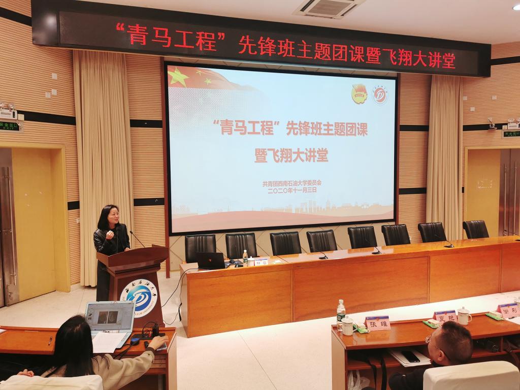11月3日晚19:00,西南石油大學“青馬工程”先鋒班主題團課暨飛翔大講堂在思學樓A114舉辦。校黨委副書記衡彤,四川省人大教科文衛副主任委員劉瑛,四川省人大民族宗教委員會辦公室干部張孝猛,校團委書記夏艷,副書記張維及校團委全體老師出席,青馬先鋒班,團校第64期學生干部培訓班學員參加。本次講座邀請省人大法工委副主任鄭蓉擔任主講人。