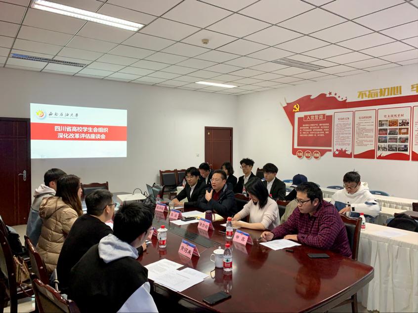 12月7日下午,四川省高校學(xué)生會組織深化改革評估工作組四川大學(xué)李楊一行4人來我校開展學(xué)生會組織深化改革工作檢查,西南石油大學(xué)校團(tuán)委副書記張維,校團(tuán)委實(shí)踐指導(dǎo)中心主任蒲彥羽以及學(xué)校學(xué)生會主席團(tuán)、研究生會主席團(tuán)及本科生、研究生代表參加會議。