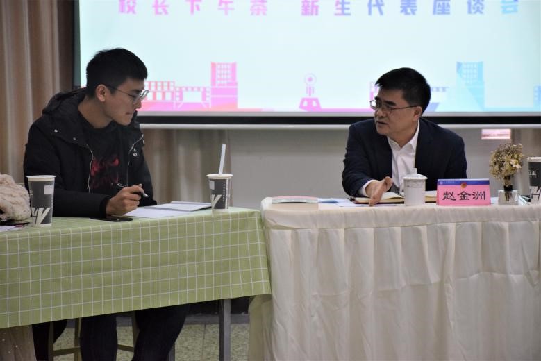 12月10日下午,“夢(mèng)溪湖畔,逐夢(mèng)未來(lái)”——校長(zhǎng)下午茶新生代表座談會(huì)在學(xué)校外語(yǔ)角舉辦。校長(zhǎng)趙金洲與30名來(lái)自各學(xué)院的本碩新生聊學(xué)習(xí)、談未來(lái),結(jié)合自己教書育人的經(jīng)驗(yàn)為新生們答疑解惑,啟發(fā)和引導(dǎo)青年學(xué)生更好地度過(guò)大學(xué)生活。校團(tuán)委書記夏艷主持座談會(huì)。