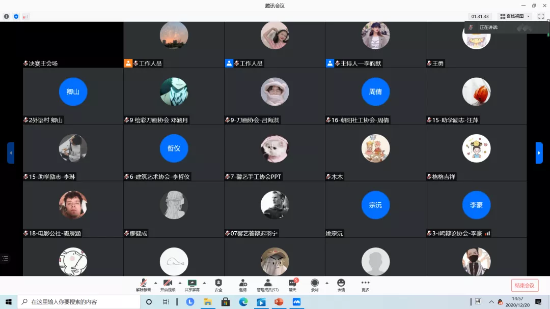 12月20日,西南石油大學2019-2020學年度星級品牌社團創建活動決賽暨第十八屆社團文化藝術節閉幕式通過騰訊會議平臺舉辦。校團委書記夏艷、黨委學生工作部副部長張浩、招生就業處副處長肖友平、雙創中心副主任張磊、校團委副書記張維、校團委實踐指導中心主任蒲彥羽、校學生社團民主管理委員會指導教師胡華丹、宋婧媛擔任評委。