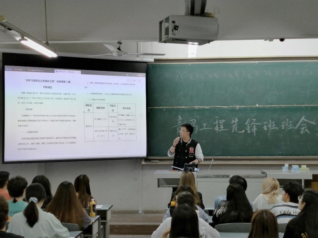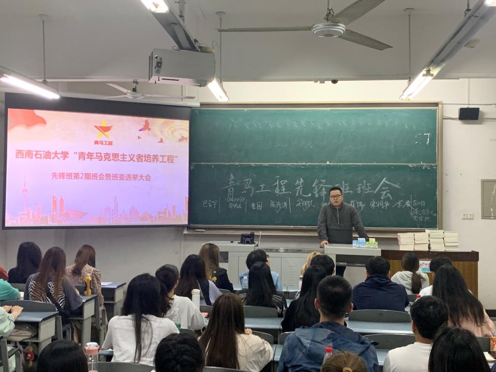 4月23日晚,西南石油大學“青年馬克思主義者培養工程”先鋒班第2期班會于博學樓A202舉行。校團委兼職副書記、青馬工程先鋒班第2期班主任申鑫及先鋒班第2期全體學員參加。班會由校團委副書記(學生)、團校副校長羅昊主持。