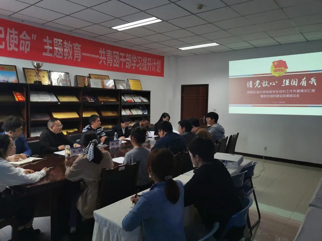 為扎實推進學校黨委對學生組織領導的具體化,進一步加強學生組織規(guī)范管理和健康發(fā)展,10月13日,校團委指導校學生會、研究生會、學生社團聯(lián)合會召開了“請黨放心·強國有我”——校級學生組織工作開展情況匯報暨學生組織建設發(fā)展座談會。黨委學生工作部代表學校黨委聽取了各校級學生組織的工作匯報,并對學生組織進一步規(guī)范管理和健康發(fā)展提出了要求、指明了方向。出席會議的有黨委學生工作部部長蒲勇、黨委學生工作部副部長陳俐宏、團委副書記張維、大學生網(wǎng)絡文化建設辦公室主任張勇,校團委全體老師,校學生會、研究生會、學生社團聯(lián)合會主席團成員。會議由團委副書記張維主持。