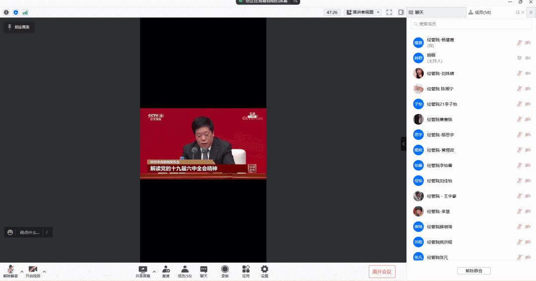期間,校團委組織全體工作人員,校院兩級學生干部通過集中學習、收聽收看等方式第一時間學習會議精神。同學們紛紛表示對黨的百年奮斗重大成就感到無比自豪,并發表了自己的想法與感悟。