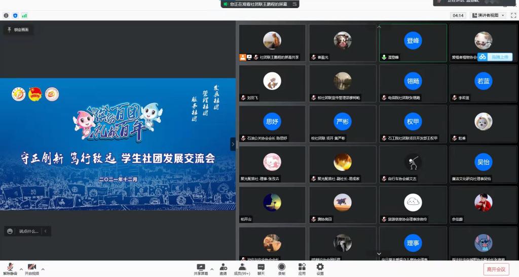 為進一步推進學生社團改革,規范學生社團健康有序發展,12月1日晚,西南石油大學學生社團聯合會在騰訊會議召開“守正創新 篤志行遠”學生社團發展交流會。校團委素質教育辦公室主任溫登峰,素質教育辦公室宋婧媛進行分享,101個協會的學生負責人及指導教師共800余人參加會議。