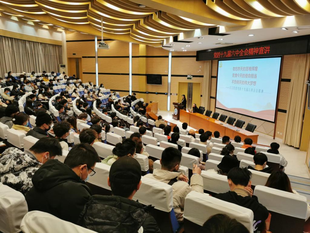 為深入學習貫徹黨的十九屆六中全會精神,引導教師黨員和學生干部切實將思想和行動統一到全會精神上來,校團委黨支部于12月12日晚上七點,在思學樓A114組織開展學習貫徹黨的十九屆六中全會精神專題宣講會,會議邀請胡國松教授作專題宣講。校團委黨支部全體成員,校團委直屬學生組織、學生會、研究生會、學生社團聯合會主要學生干部參加會議。