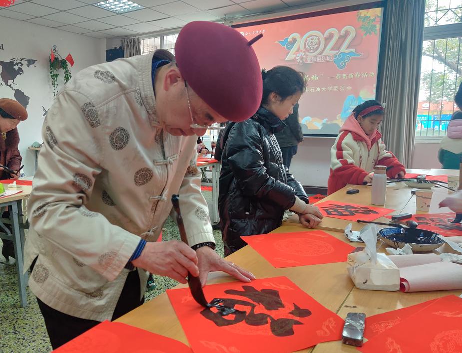 石油大學(xué)社區(qū)詩(shī)書(shū)畫(huà)協(xié)會(huì)會(huì)長(zhǎng)趙一民老師為寒假留校同學(xué)送“福”