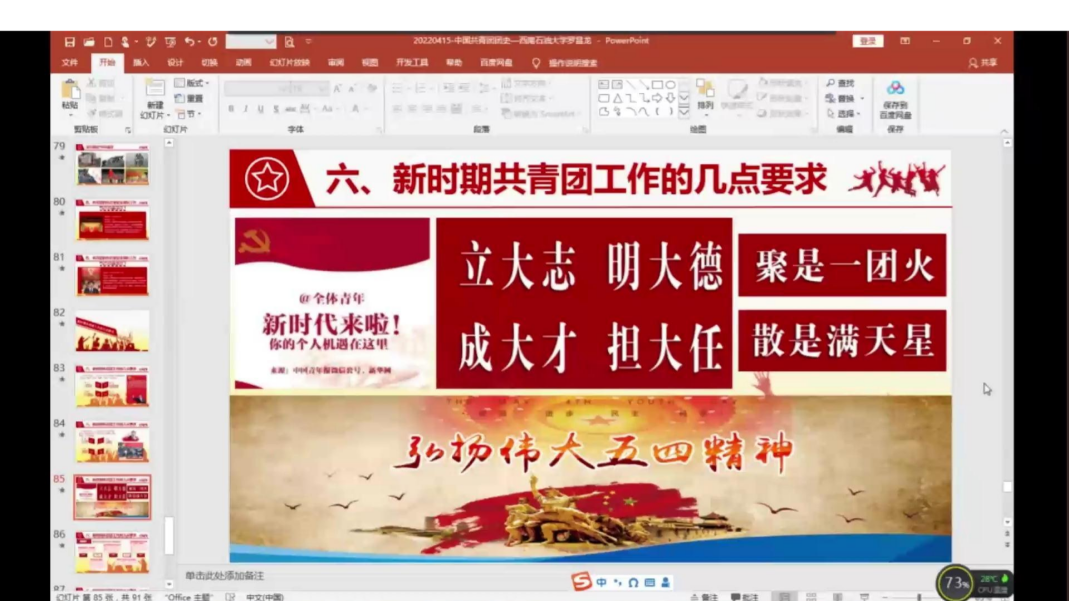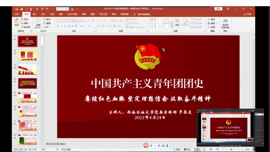 4月24日下午,西南石油大學2022年度基礎團務知識線上培訓第一次課程講座于線上舉行。學校黨委宣傳部宣傳教育科科長羅昌龍擔任主講嘉賓,基礎團務知識線上培訓班全體學員參加培訓,講座由團校劉智恒同學主持。
