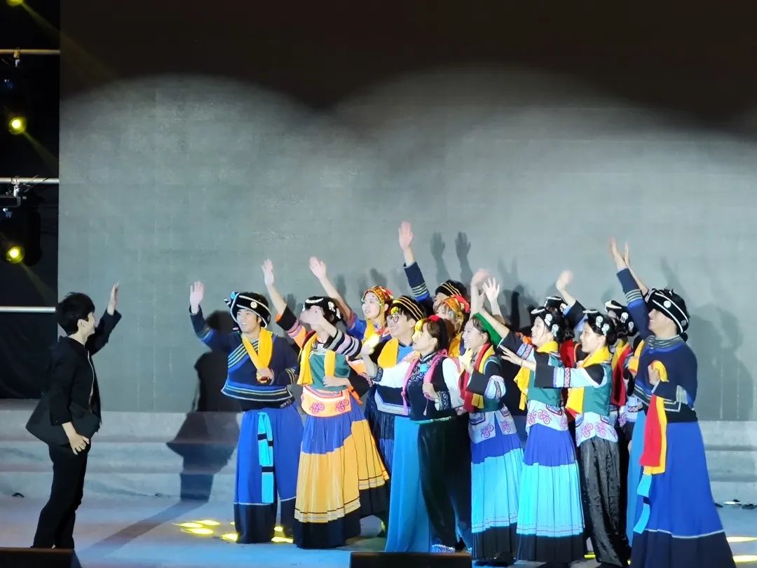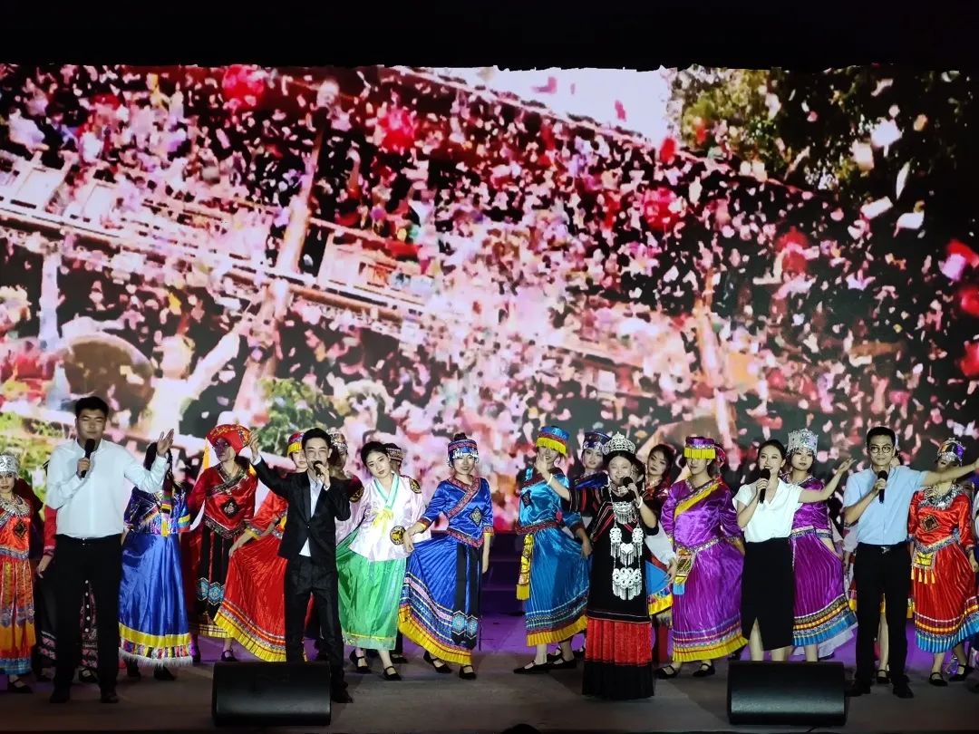 化工院的同學們穿著各式各樣的民族服飾,與老師們帶來歌舞《再唱山歌給黨聽》,同時他們還展現出了教師學生為了支教獻上自己的美好韶華,舍個人為祖國。他們說“功在當代,利在千秋”,他們還說“我們開創未來”。