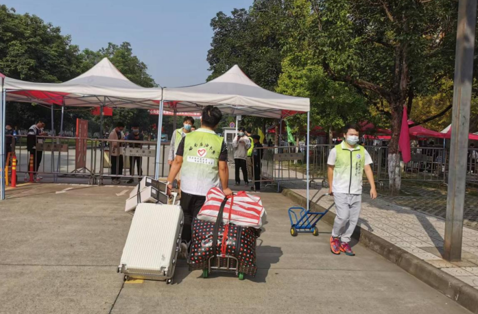 自今年7月10日起,廣大留校團(tuán)員青年便義無反顧地加入了學(xué)校疫情防控的志愿者隊(duì)伍,“請出示返校憑證、請大家間隔1米、排好隊(duì)、請佩戴好口罩”成為了假期學(xué)生志愿者使用的最高頻詞匯。雖然烈日當(dāng)頭、汗如雨滴,但是溫馨提示依然從容堅(jiān)定。“各位家長,到這里,就到家了,請將行李交給我們,我們會與其他志愿者,一同幫同學(xué)將行李送至樓棟,請您放心”,行李搬運(yùn)組的張映江同學(xué)一邊擦拭著汗水,一邊向前來送別的新生家長說。這是出現(xiàn)在10月20日上午校外新生來校通道內(nèi),一名來自河南新生家長面對成堆的行李焦急萬分,無計(jì)可施時暖心的一幕,激動的家長豎起大拇指,連連稱贊“中”……