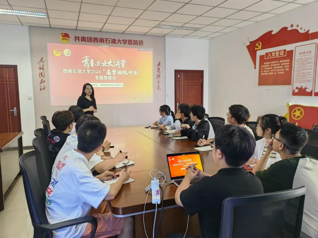 2024年5月24日上午,由校團(tuán)委主辦的“青春就業(yè)大講堂”-西南石油大學(xué)2024年“逐夢(mèng)揚(yáng)帆計(jì)劃”專(zhuān)題答疑會(huì)通過(guò)線(xiàn)上線(xiàn)下相結(jié)合的方式成功開(kāi)展。答疑會(huì)旨在深入學(xué)習(xí)貫徹習(xí)近平新時(shí)代中國(guó)特色社會(huì)主義思想和黨的二十大精神,落實(shí)黨中央、國(guó)務(wù)院關(guān)于高校大學(xué)生就業(yè)工作決策部署,根據(jù)《2024年四川省共青團(tuán)促進(jìn)大學(xué)生就業(yè)行動(dòng)工作提示與指引》文件精神要求,搶抓就業(yè)工作關(guān)鍵期,充分做好學(xué)生就業(yè)指導(dǎo)服務(wù)工作,全力以赴促進(jìn)學(xué)校畢業(yè)生高質(zhì)量充分就業(yè)。