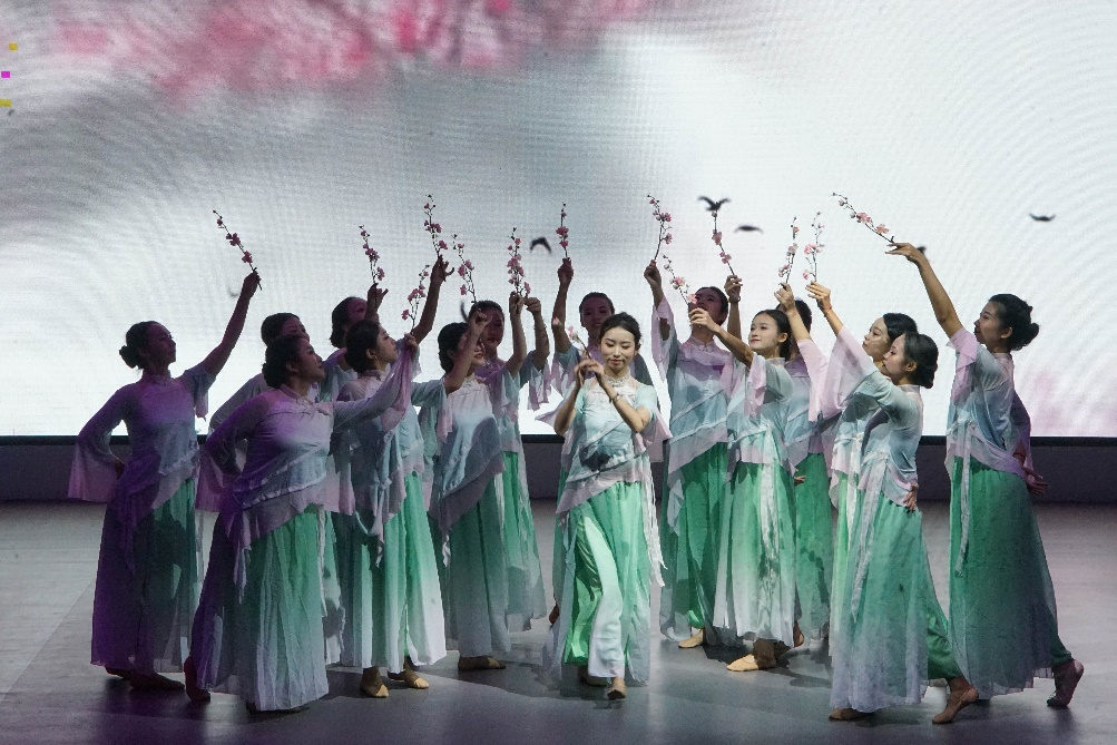 11月8日,14個學院的舞蹈代表隊在飛翔廣場盡情起舞。《花想容·露華濃》以“形神兼備,身心互融內外統一”的身韻,開啟了此次舞蹈之旅;振奮人心的《山海》傳達出跨越山海、勇往直前的追尋;《This is Me》用舞蹈詮釋了“我生而不平凡”的堅定信念;《共和國之戀》以“舞”言情,表達對祖國深深的熱愛;當科技遇上靈動舞姿,《電子律動》將電子信號化作輕盈的舞步,實現光與影的完美融合;璀璨的燈火中,《燈火里的中國》傳遞出中國的獨特魅力;《小河淌水》以志愿軍的視角展現出對和平的渴望和對新中國的無限憧憬;《水墨畫卷》將古代文化的魅力與現代舞蹈的融合,仿佛水墨在紙上流動、暈染;《半個世紀的等待》再現了中國共產黨早期革命時期烈士許包野與妻子的深情故事;《史箋舞韻》似靈動的畫筆在虛空之中勾勒出絕美的畫卷,領略古代女性的智慧與魅力;《漢韻思歸》長袖飛揚、舞姿優雅,帶領觀眾穿越時空回到了遙遠的漢代楚地;《山河圖》用激昂的舞步和堅定的眼神詮釋著祖國的壯麗山河和輝煌歷史;充滿優雅與力量的爵士舞《佳人》讓觀眾感受到了東方女性的美麗與智慧。