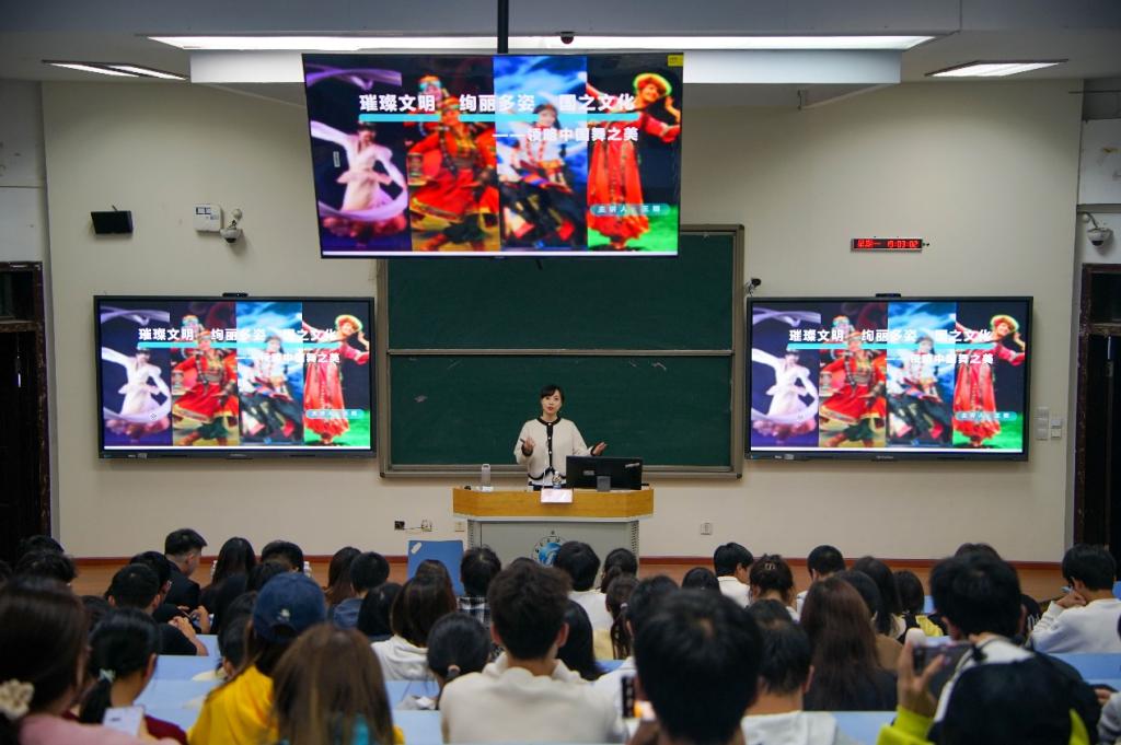 11月4日,我校藝術學院教師王娜以“璀璨文明,絢麗多姿,國之文化-領略中國舞之美”為題開展舞蹈專題講座,指出舞蹈不僅是一種藝術表達形式,更是一種文化傳承和精神傳遞。并讓助教在現場給同學們進行示范,讓同學們體驗了中國舞中小五花和踢踏舞的基本韻律,引導青年學生加深對舞蹈藝術的理解。在互動環節中,王娜老師將個人對舞蹈的理解和心得進行分享,鼓勵青年學子勇敢追求夢想。