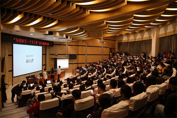 在第30個(gè)“世界艾滋病日”到來之際,為進(jìn)一步提高大學(xué)生預(yù)防艾滋病的自覺性,積極在大學(xué)生中開展預(yù)防艾滋病知識(shí)宣傳教育工作。11月24日晚7點(diǎn),由校學(xué)生會(huì)組織部、學(xué)習(xí)部、拓展辦主辦的“為愛防艾,予艾于愛”主題演講比賽決賽于思學(xué)樓A114舉行。新都區(qū)疾控中心傳控科副科長梁海東、校團(tuán)委書記夏艷、校學(xué)工部副部長陳俐宏、校醫(yī)院院長張繼紅、校醫(yī)院公共衛(wèi)生主任醫(yī)師彭玲擔(dān)任評(píng)委。共有來自十四個(gè)院的優(yōu)秀選手參加了決賽。