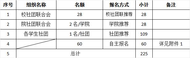 1、請相關組織負責人于4月11日16:00前將推薦學員名單《社團聯合會學生骨干培訓推薦名單》(見附件2),發送至郵箱:3170556522@qq.com;