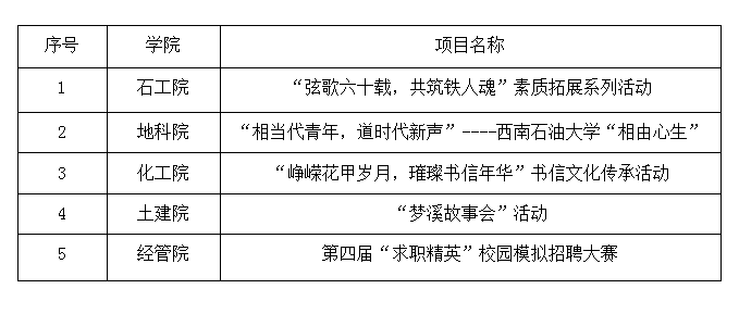 經各學院代表答辯,現場評審投票后決定,在15項申報項目中選定5項作為“一院一品”校級團學精品活動;在12項申報項目中選定5項作為“素質拓展”校級團學精品活動。具體項目名單公布如下: