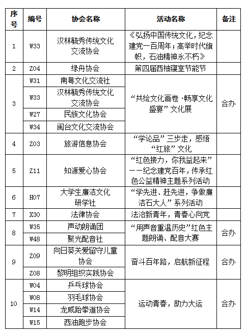 關于西南石油大學2020—2021學年春季學期學生社團素質拓展活動、品牌活動評選結果的公示