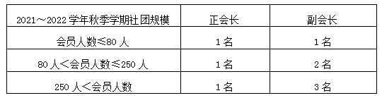 2021~2022學年秋季學期各學生社團負責人數量將依據2021~2022學年秋季學期學生社團招員納新情況確定。具體崗位設置情況如下: