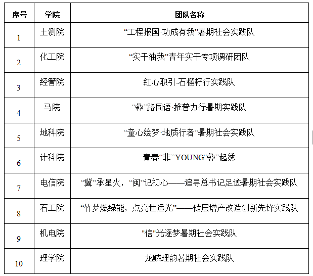 西南石油大學2025年大學生志愿者暑期文化科技衛生“三下鄉”社會實踐活動重點團隊評選結果表