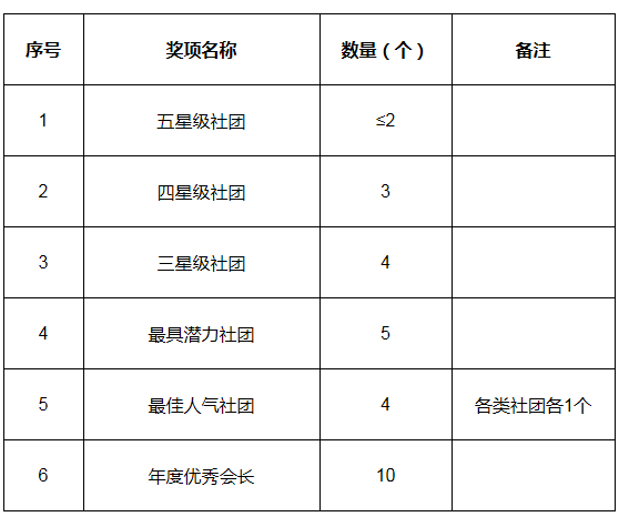5、投票結(jié)果將占該獎項(xiàng)總成績的60%,其余40%成績將由“評委會”根據(jù)社團(tuán)會長(或副會長)平時(shí)表現(xiàn)、社團(tuán)整體情況綜合評出。