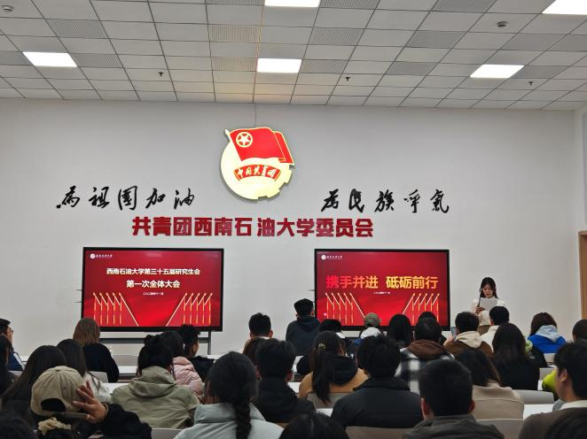 2024年11月19日,西南石油大學第三十五屆研究生會在雙創大樓B404會議室隆重召開第一次全體會議。本次會議旨在加強西南石油大學研究生會的組織建設,提升管理工作水平,深化內部凝聚力與戰斗力。大會由文化體育部李欣諾同學主持,西南石油大學研究生會全體成員參與本次會議。