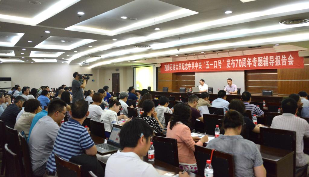 為紀(jì)念中共中央“五一口號(hào)”發(fā)布70周年,5月18日下午,西南石油大學(xué)舉行紀(jì)念“五一口號(hào)”發(fā)布70周年專(zhuān)題輔導(dǎo)報(bào)告會(huì),四川統(tǒng)一戰(zhàn)線智庫(kù)首席專(zhuān)家、九三學(xué)社省委特約研究員、長(zhǎng)征干部學(xué)院客座教授、四川省社科院教研室副主任顏旭做了題為《新時(shí)代統(tǒng)一戰(zhàn)線與新型政黨制度》的專(zhuān)題報(bào)告。學(xué)校統(tǒng)戰(zhàn)部部長(zhǎng)易聯(lián)樹(shù)主持會(huì)議。