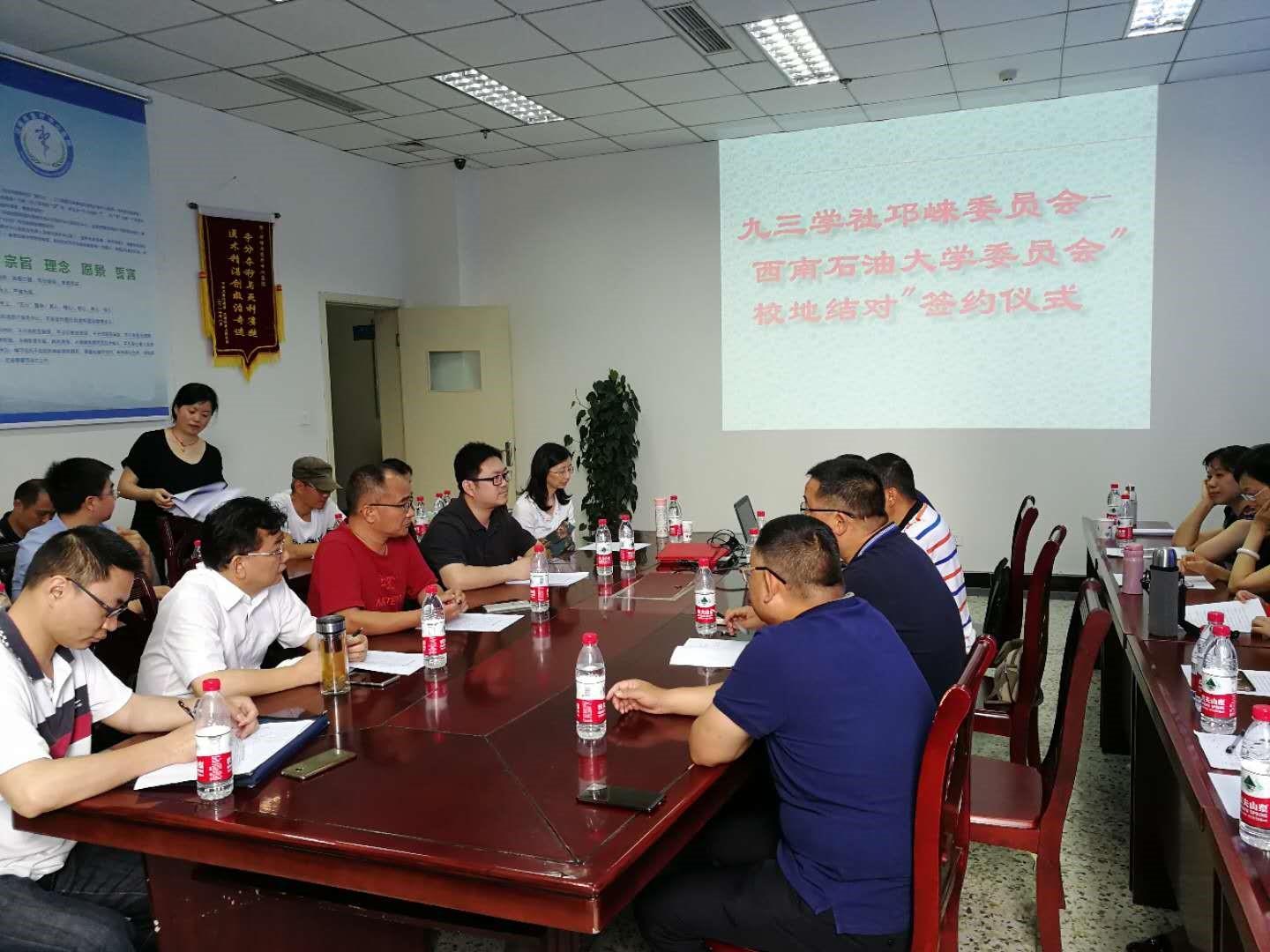 5月19日,九三學(xué)社西南石油大學(xué)委員會(huì)與九三學(xué)社邛崍市委員會(huì)開(kāi)展“校地結(jié)對(duì)子”共建活動(dòng),雙方就學(xué)社建設(shè)、校企合作、拓寬社員服務(wù)地方經(jīng)濟(jì)社會(huì)發(fā)展、提高社員參政議政水平等方面進(jìn)行廣泛交流,達(dá)成合作共識(shí),并舉行了隆重的現(xiàn)場(chǎng)簽約儀式。本次活動(dòng)由九三學(xué)社邛崍市委員會(huì)主委喻俊林主持,九三學(xué)社西南石油大學(xué)委員會(huì)和九三學(xué)社邛崍市委員會(huì)全體社員,九三學(xué)社成都市委、西南石油大學(xué)統(tǒng)戰(zhàn)部、邛崍市委統(tǒng)戰(zhàn)部相關(guān)人員參加了本次活動(dòng)。