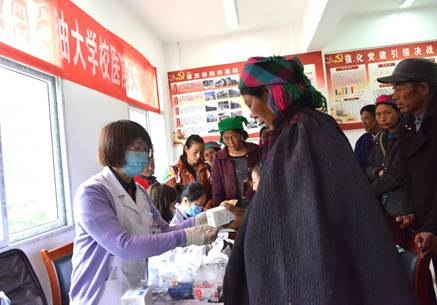知聯會副會長、校醫院院長張繼紅,帶領校醫院多名醫生在金陽縣新寨子村開展醫療幫扶,免費為村民做身體檢查,普及健康和衛生知識,并向村民贈送家庭常備藥品。