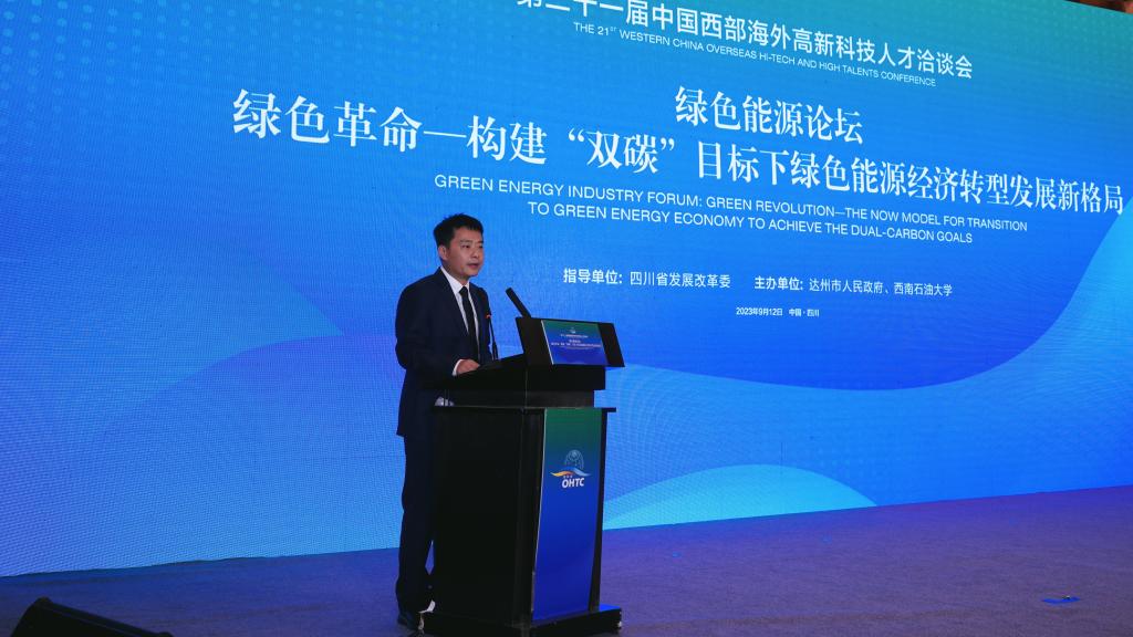 以“共建創新生態·共享科技未來”為主題的第二十一屆中國西部海外高新科技人才洽談會(簡稱“海科會”),于9月11日在成都舉行。全國政協副主席、九三學社中央常務副主席邵鴻出席開幕式并講話。省委書記王曉暉,中央統戰部副部長、國務院僑辦主任陳旭分別致辭。省委副書記、省長黃強,省委副書記、成都市委書記施小琳出席。根據省委統戰部安排,由我校和達州市人民政府共同主辦“海科會”綠色能源論壇。