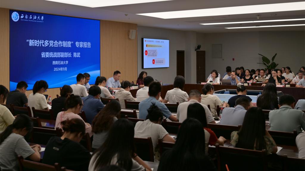 為提升學(xué)校統(tǒng)戰(zhàn)干部業(yè)務(wù)能力,宣傳和掌握統(tǒng)戰(zhàn)領(lǐng)域新知識、新成果,按照學(xué)校年初統(tǒng)戰(zhàn)工作要點安排,9月12日下午,學(xué)校邀請省委統(tǒng)戰(zhàn)部副部長陳武,為學(xué)校統(tǒng)戰(zhàn)干部隊伍和學(xué)生圍繞新型政黨制度作專題報告。校黨委副書記、工會主席衡彤出席專題報告會并作動員講話,校黨委常委、統(tǒng)戰(zhàn)部部長蒲勇主持報告會。