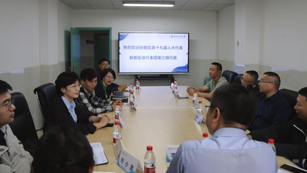 10月9日下午,新都區第十九屆人大代表新都街道第三組一行8人到我校調研校內配備AED(體外除顫儀)情況,學校黨委統戰部副部長牟卿,新都區人大代表、九三學社西南石油大學委員會主委、科學技術發展研究院副院長陳鑫,校醫院黨委書記胡俊,校醫院院長、校知聯會副會長張繼紅與調研人員在校醫院開展了座談。