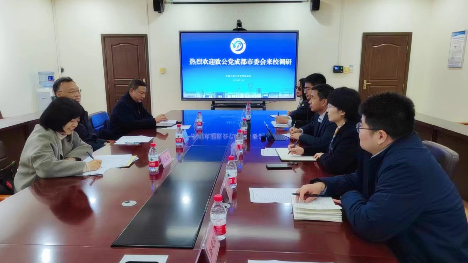 3月11日下午,成都市政協副秘書長、致公黨成都市委會專職副主委呂海波,致公黨成都市委會副秘書長余夔,致公黨成都市委會組織處處長詹曉黎一行來校走訪調研并座談,校黨委常委、統戰部部長、學生工作部部長蒲勇應邀參加,座談由校黨委統戰部副部長牟卿主持。