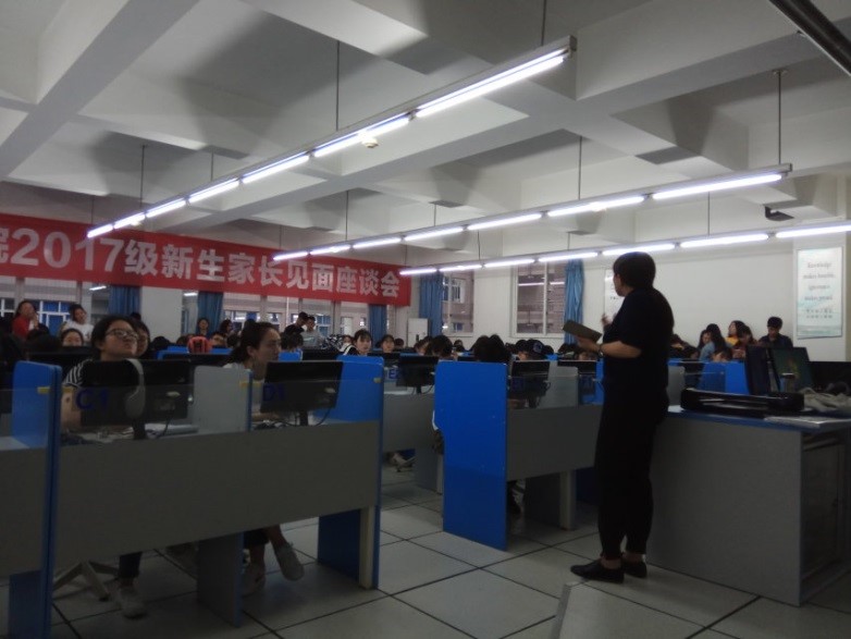 晚上6:30,何姍老師在會議結束后,趕到了思學樓B203,教室里已經座無虛席,還有部分同學站在過道里。何姍老師首先給各班同學分享了英語專業2017級培養計劃,然后對照培養計劃的相關內容給同學們介紹了石油科技英語、和國際商務英語兩個專業方向的課程設置,以幫助同學們清楚了解兩個方向分別有什么不同的目標要求。接著,何老師給大家提出了建議:選擇專業方向應該從哪些方面分析、思考?她告訴同學們,首先需要結合自身的學科能力選擇各自更加擅長的方向。此外,當然也要結合未來的職業傾向,但不能拘泥于眼前的局勢,同學們中間流傳的石油行業不景氣的說法雖是事實,但并不說明幾年后行業的走向。總之,選專業方向要慎重,不盲從。