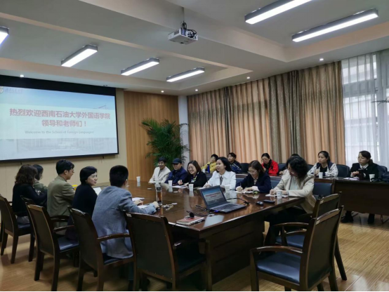 2019年10月31日下午,呂旭英副院長(主持工作)帶隊,同學院分管教學副院長陳婧、我院各教研室主任、校級精品課程負責人、院級優質課程負責人等一行18人前往西南交通大學進行調研,圍繞課程建設、大學英語改革、本科生培養、研究生人才培養等問題進行探討。