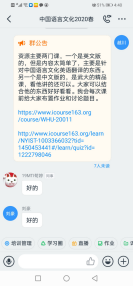 二、創新形式,師生互動精彩。為幫助學生適應線上教學這種新的教學模式,各任課教師全程參與,利用微信群、QQ群、釘釘等網絡平臺實施直播、錄播教學,或利用現有網絡公共平臺優質課程等資源進行線上教學,或利用現有文獻等資源進行研討教學,在QQ群或微信群中對學生進行輔導答疑,集中講解重點難點。任課教師在線點名、隨機連麥抽問、布置課后作業及預習內容,更好地保障了在線教學的效果。