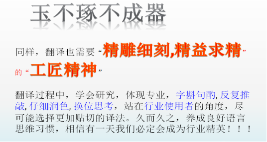 無論是翻譯技巧,排版方法,還是項(xiàng)目管理,同學(xué)們都懷憧憬。在實(shí)訓(xùn)老師的引領(lǐng)和指導(dǎo)下,經(jīng)過不斷的學(xué)習(xí)和訓(xùn)練,我們的翻譯實(shí)踐能力一定能夠更上一層樓!