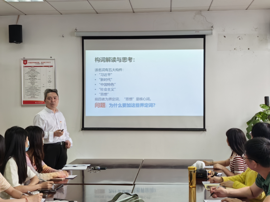 5月25日下午,外國語學(xué)院第一教研室黨支部全體黨員就“學(xué)習(xí)貫徹習(xí)近平新時代中國特色社會主義思想”進(jìn)行了集體學(xué)習(xí)。這次主題學(xué)習(xí)是由副院長李虎同志講黨課,主題為“對習(xí)近平新時代中國特色社會主義思想的基本認(rèn)知”。