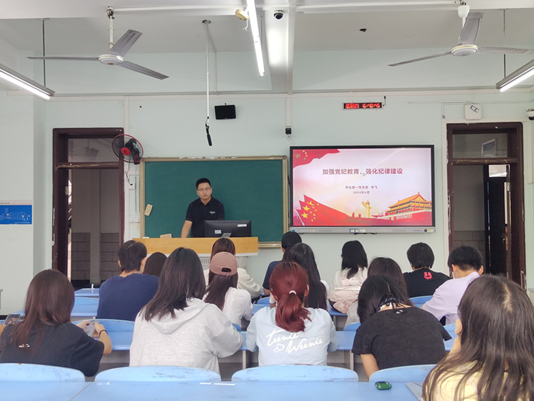 6月27日下午,我院學生第一黨支部于在思學樓A212教室順利開展“加強黨紀學習,強化紀律建設”專題黨課。本次黨課由黨支部書記李飛主講,全體黨員同志積極參與,共同學習黨的紀律和規矩,進一步筑牢黨性修養的基石。