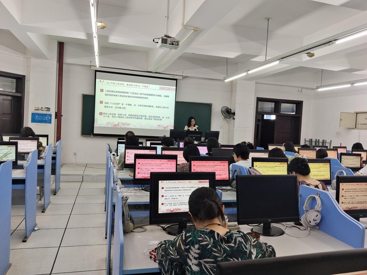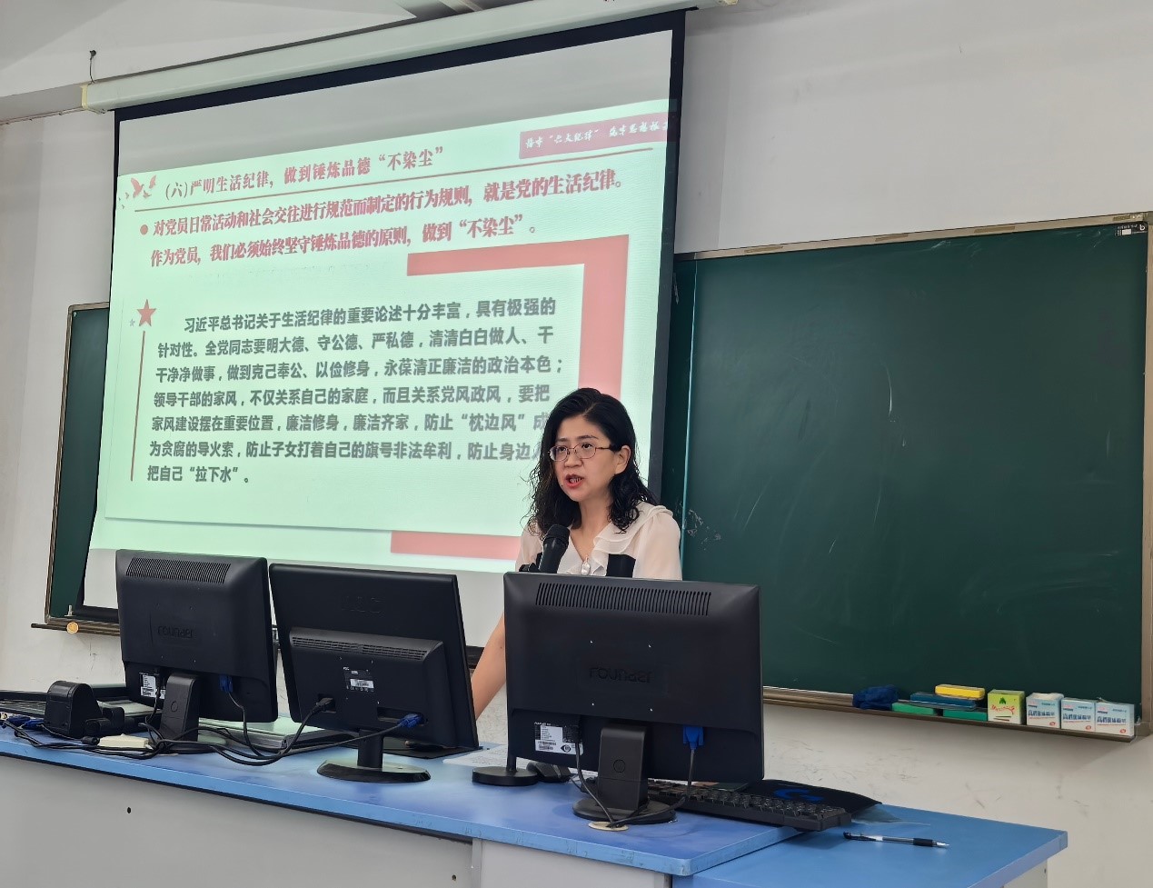 7月11日下午,我院在思學樓B307開展黨紀學習教育專題黨課。本次專題黨課由學院黨委書記姚明淑主講,全院教職工黨員參加本次黨課學習。