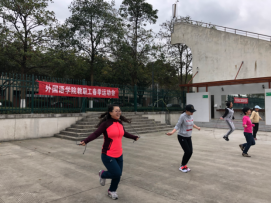 為豐富我院教職工業余文化生活,增強教職工身體素質,構建和諧學院、幸福家庭,增強學院的凝聚力,外國語學院春季教職工運動會于2019年3月30日在校一期運動場隆重舉行。此次運功會包括 跳繩、踢毽子、托乒乓球和定點投籃,四個比賽項目。