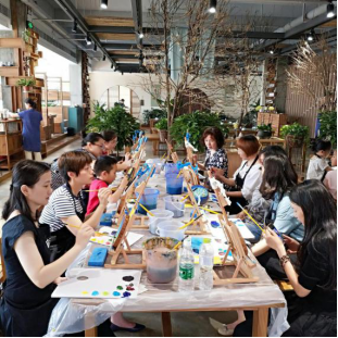 為提升外國語學院教職工藝術修養,陶冶高尚情操,舒心減壓,修心怡情,2018年5月20日上午,外國語學院工會舉辦了一場以“遇見更美的自己”為主題的藝術課堂,三十余位教職工及家屬一起體驗了油畫的藝術魅力。
