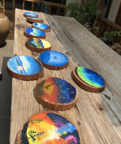 隨爸爸媽媽一同前來的“小藝術家”們也各自發揮著創作天賦,在老師的指導下,將星空、月夜等場景描繪到小原木片上,留下一幅幅富有創造性、飽含意境的作品。