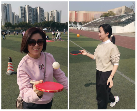 3月10日下午,學(xué)院老師們首先參加了“校園踏春行”健身走活動(dòng)。老師們?cè)谄瘘c(diǎn)合影后,從學(xué)校游泳池旁健身步道出發(fā)。整潔的步道旁綠樹成蔭,教師們邁著矯健的步伐,闊步前行,在與大自然的親密接觸中放松身心,鍛煉身體,更增進(jìn)了彼此間的溝通和交流。之后,隊(duì)伍行進(jìn)至北大門,從健身步道返回至一期田徑運(yùn)動(dòng)場(chǎng)。在這里,趣味運(yùn)動(dòng)會(huì)正在等待著老師們的到來(lái)。本次的“快樂(lè)健身”趣味運(yùn)動(dòng)中,外國(guó)語(yǔ)學(xué)院工會(huì)設(shè)置了“顛乒乓球跑”游戲,老師們用乒乓球拍顛乒乓球,從起點(diǎn)開始運(yùn)球繞標(biāo)志物返回起點(diǎn),中途不得有乒乓球掉落,如有掉落,便重新開始。該項(xiàng)目充分展示個(gè)人風(fēng)采,既需要較高的平衡技巧,又需要一定的耐力,集娛樂(lè)健身于一體。運(yùn)動(dòng)中,教師們盡情揮灑激情,釋放熱情,盡顯“巾幗本色”。游戲中高潮不斷,精彩紛呈,運(yùn)動(dòng)場(chǎng)上充滿了和諧友愛(ài)的歡笑。