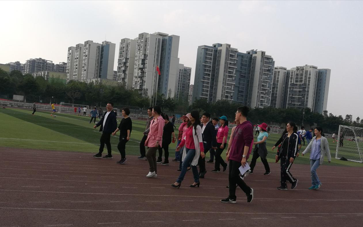 教職工們迎著夕陽,帶著自信的微笑,踏著整齊的步伐,展示出了他們對運動的滿腔熱情以及團結(jié)協(xié)作、奮發(fā)向上的決心。在大家的共同協(xié)作努力下,整個排練活動效果良好。
