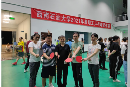 9月13至15日校工會主辦的西南石油大學教職工乒乓球團體賽在體育館舉行。此次活動以增強教職工的身體素質,促進教職工間的溝通交流,豐富教職工的業余生活為旨,在各工會的協作組織下全校共有十八個基層工會、一百二十余名教職工參與比賽。本次乒乓球比賽以混合團體形式進行,在小組循環賽階段,按照男單、女單、混雙、女單、男單順序進行,每場采用5局3勝制。