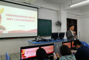 2020年9月24日下午2點30分,外國語學院在思學樓B307教室召開全院教職工大會,選舉學院出席學校第八屆教職工代表大會暨第十二次工會會員代表大會代表。學院89名教師參加了選舉大會,會議由外國語學院工會主席廖穎主持,院黨委書記杜宗良發表了致辭。