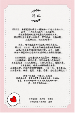 活動結束后,外國語學院工會將所有作品進行了整合,并且把對大涼山和土豆的特殊關系的相關介紹加入到了整合文稿中,用文字傳遞愛,記錄愛,并推廣供全校教職工品鑒。本次活動暖胃暖心,學院工會希望能通過這種方式讓大家更切身體會和投入到扶貧工作中,在精準扶貧的同時也能激發大家對美好生活的珍惜和熱愛。