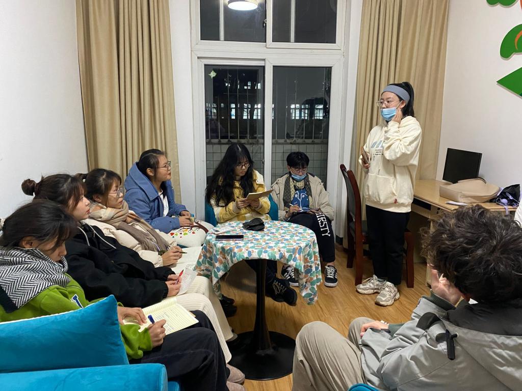 在分享會中,新生們由于考試的形式,內容以及最終成績組成的變化產生了不小的壓力,有些同學不知道該如何化解壓力,并想要尋找有效的復習方法。對此,心理健康協會部長作為新生們的學長學姐提供了不少有效的復習方法,并與產生壓力的同學進行了詳細的交流和探討,認真聽取了他們對于考試壓力的看法并為他們提供了一些緩解壓力的小技巧,比如快步走還有慢跑,持續半個小時以上,通過運動可以達到緩解焦慮的目的,其原理就是運動可以促進人體產生內啡肽,內啡肽有助于保持愉悅的心情。最后,大家坐在一起互相傾訴壓力并分析緩解方法,整個分享會圓滿結束。